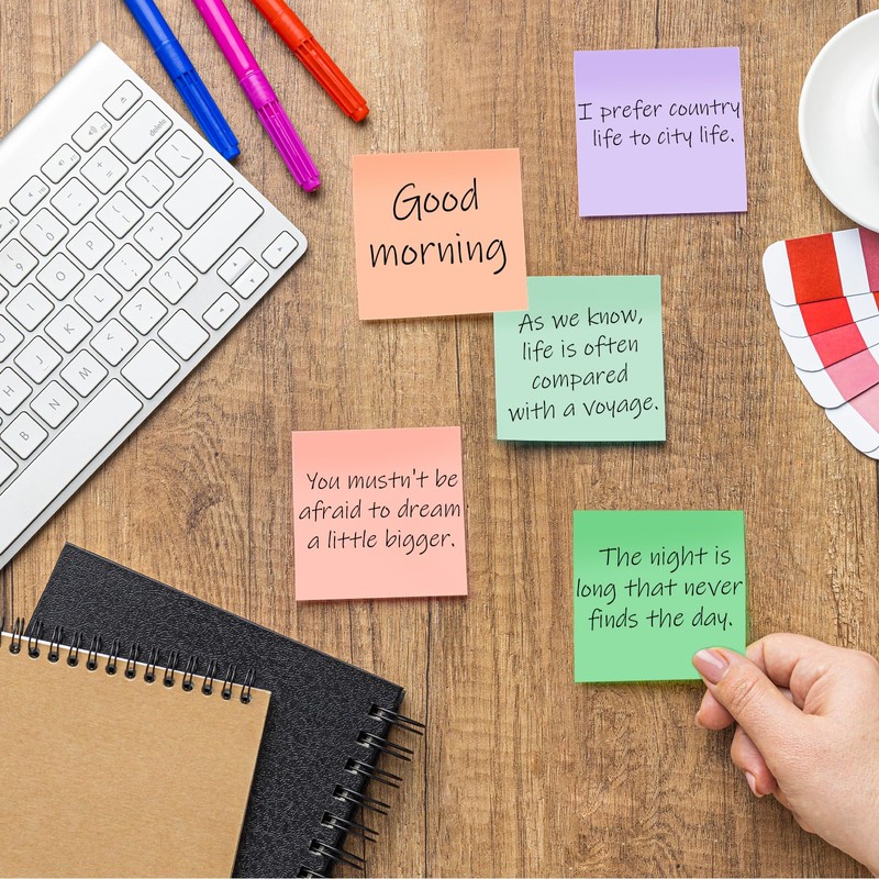 - Size: 3 x 3 inches, six hundred and forty sheets of colorful sticky notes, enough for daily life and office use