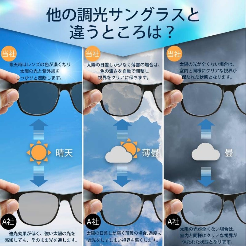 - In addition to dimming, this pair of sunglasses is also equipped with a variety of functions, including UV protection, blue light cut, and visible light transmittance. The stylish design and functionality make it easy to use for everyday use