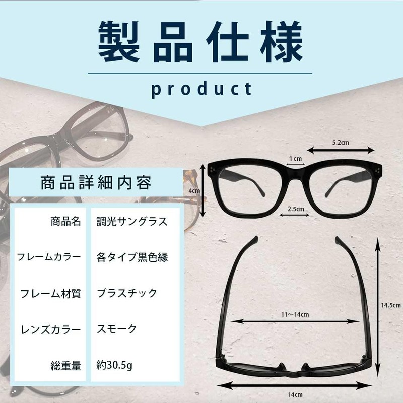 - Product Contents: Dimmable sunglasses. *Case and cleaning cloth are not included. Please check before you bid