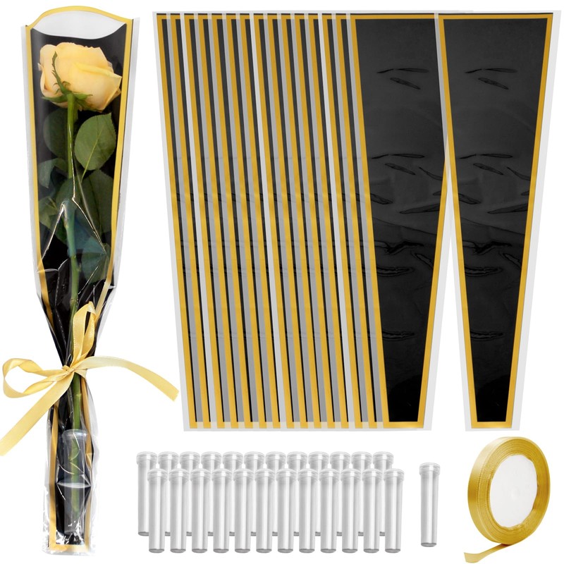 - Complete Floral Ensemble: Enhance your flower arrangements effortlessly with our inclusive set of 50 single flower sleeves, 50 water tubes, and a ribbon roll. Perfect for elevating your floral presentations and gift wrapping