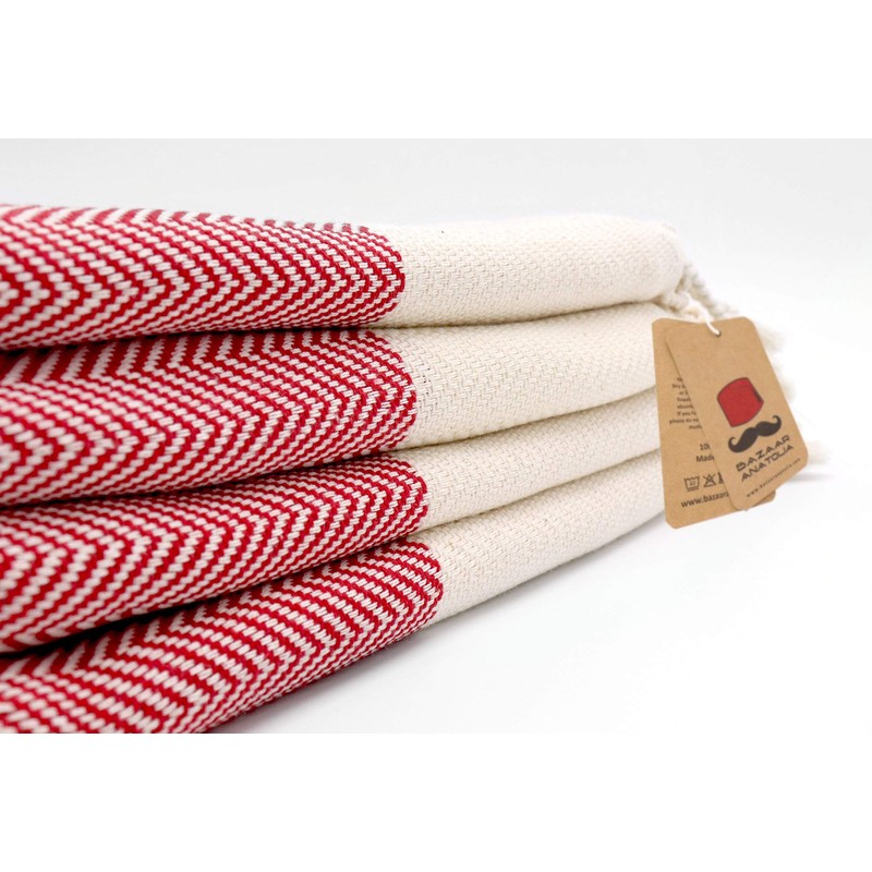 Set of 4 Turkish Hand Towels Red Herringbone