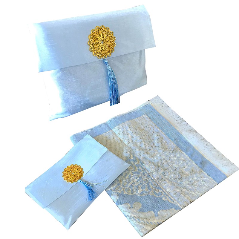bazachi Mihrab Taffeta Ottoman Prayer Mat/Rug with Gift Bag (Baby Blue)