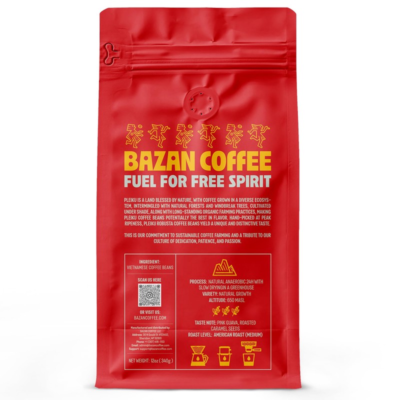 BAZAN COFFEE Fine Robusta Gia Lai, Vietnamese Coffee, Notes of Pink Guava, Fruity, Whole Bean, Medium Roast, 12oz