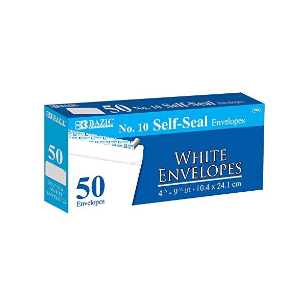 BAZIC #10 Self-Seal White Envelope (50/Pack)
