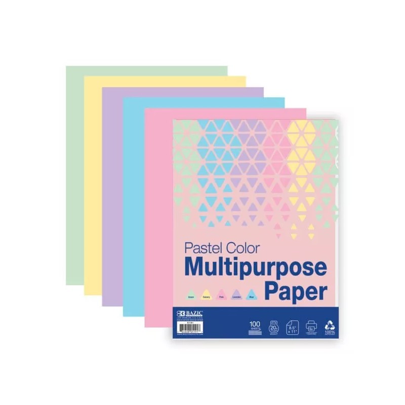 bazic 2 pks 25 Sheets Pastel Color Multipurpose Paper 8.5"X11", Colored Copy Paper Fax