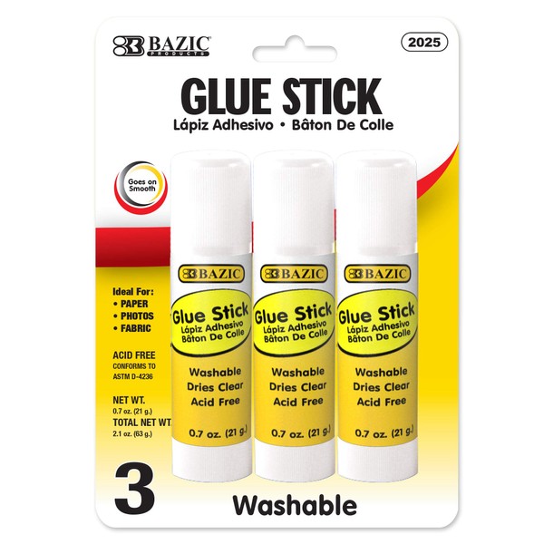 BAZIC 2025 Large Glue Stick. Clear Glue Stick for Art and Office Projects (3/Pack. 21g / 0.7 Oz .)
