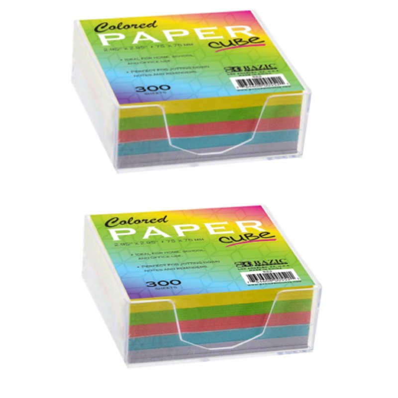 BAZIC Color Paper Cube with Tray 300 Count/ Mini Memo Papers Each Pack of 2