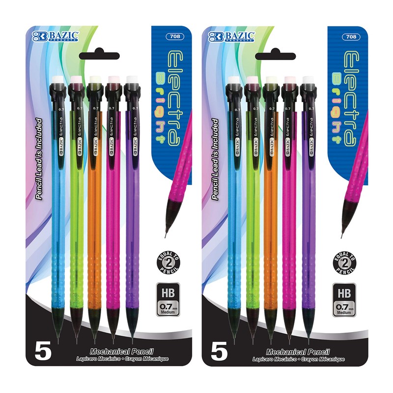 • ⭐ ELECTRA BRIGHT 0.7MM MECHANICAL PENCIL. Each pack includes 5 pencils with 0.7mm lead. This mechanical pencil is a useful product for drawing or writing. Comes in assorted color; Actual Colors May Vary!