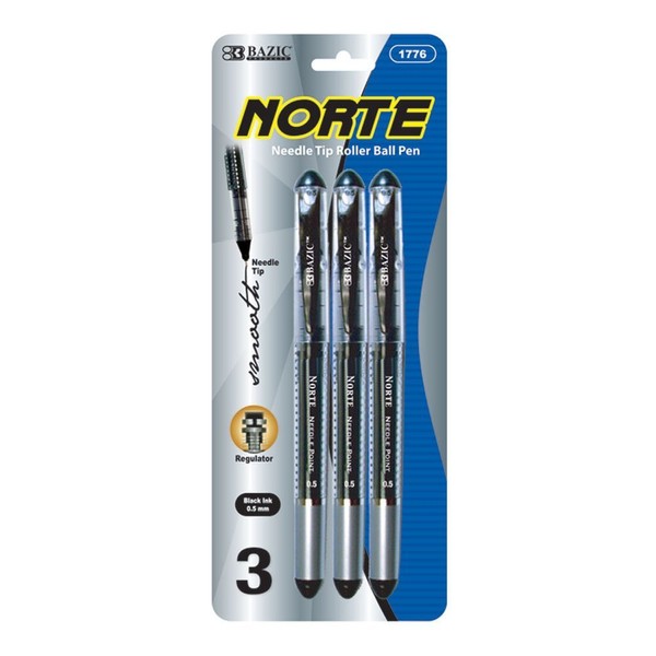 BAZIC Norte Black Needle-Tip Rollerball Pen (3/Pack)(Case of 24)
