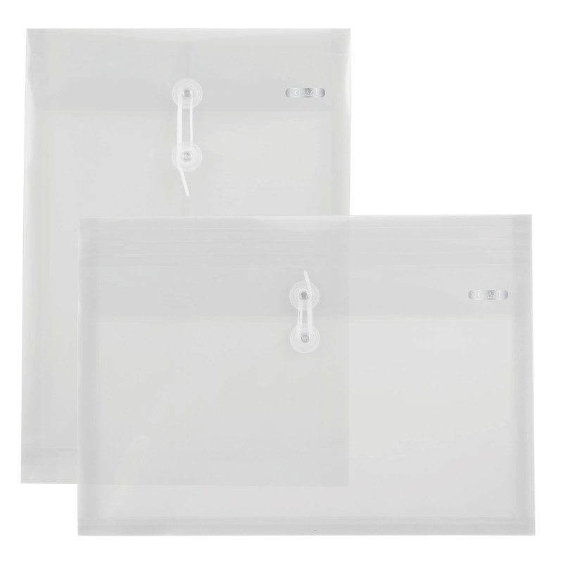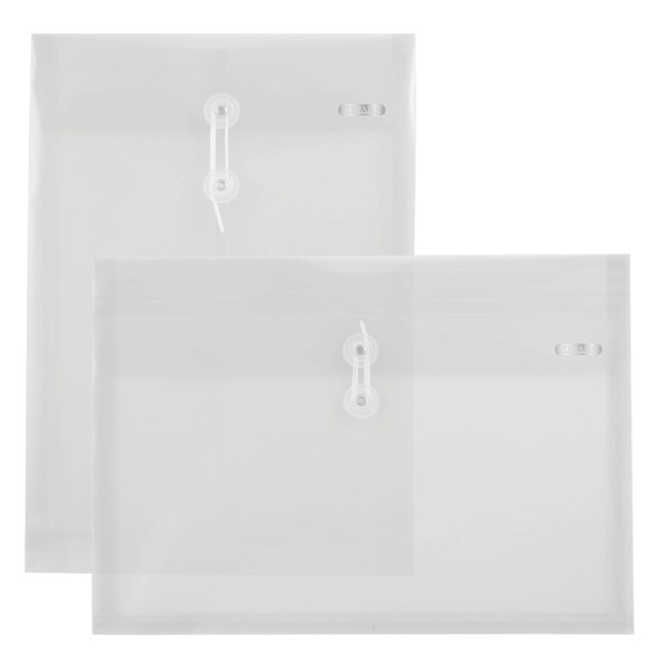BAZIC Products Plastic Envelopes with String Closure, Clear Poly Envelopes with 1 Top-Loading and 1 Side-Loading Design, Durable Transparent File Holders for Home, Office, or School, 2-Count