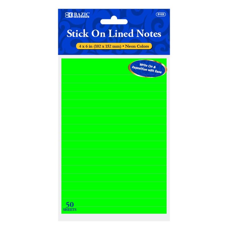 BAZIC Sticky Notes 4x6 Lined Ruled Neon Color Post Stickies, Self Stick Note, Colorful Adhesive Memo Pads, Recyclable (50 Sheets/Pack), 24-Packs