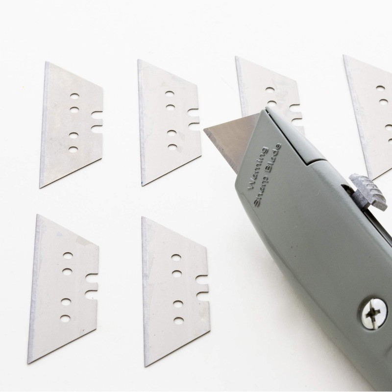 - ⭐ SAFE CONTAINER. Include 8 blades & 1 storage plastic case per pack. Sharp edge for your scraper, trimmer, cutting, crafting needs. Suitable for office, warehouse, shipping, home improvement.