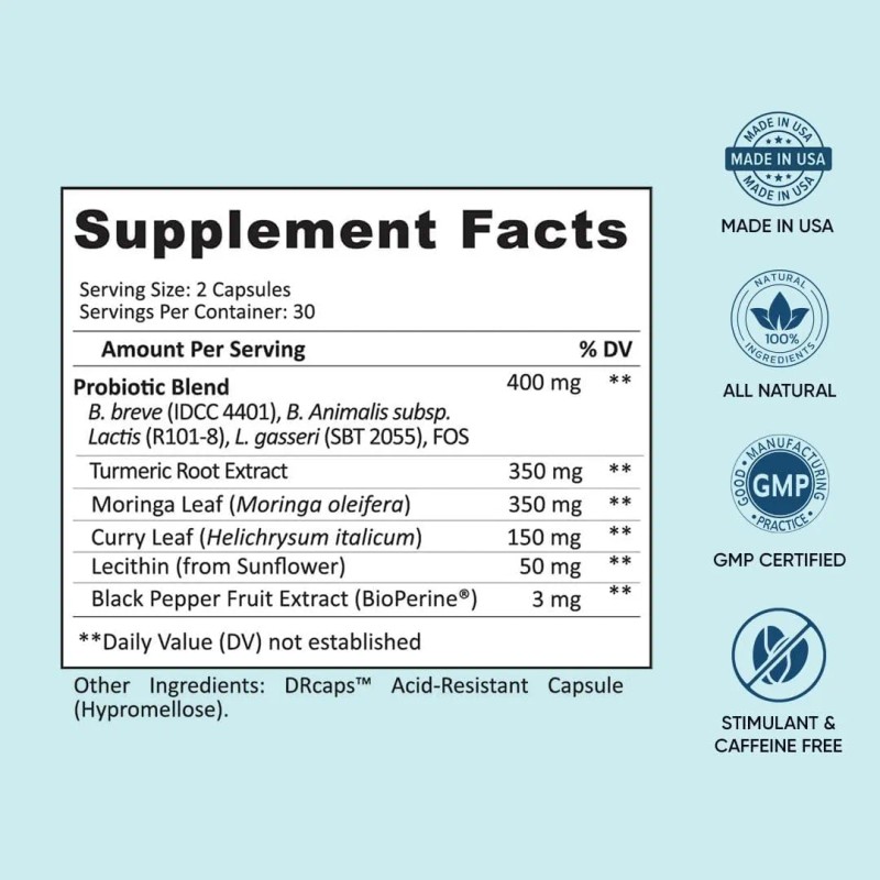 Mezcla de Probióticos: Suele incluir cepas como L. Gasseri, B. Breve y B. Lactis, seleccionadas por su potencial para influir en el metabolismo, el peso y el equilibrio hormonal.