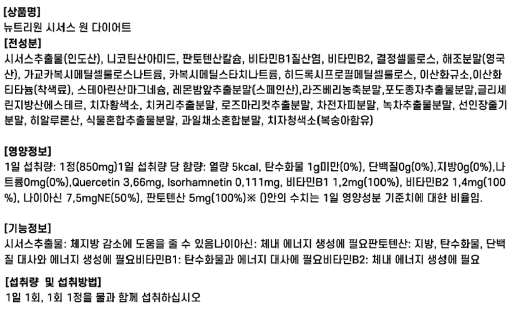 뉴트리원 비비랩 시서스 원 다이어트 850mg 14정 3개