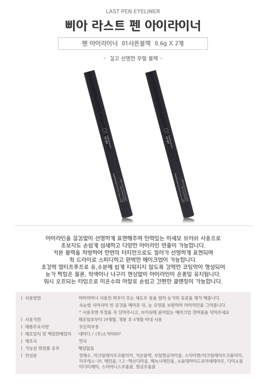 삐아 라스트 펜 아이라이너 01 샤픈블랙 X 2개