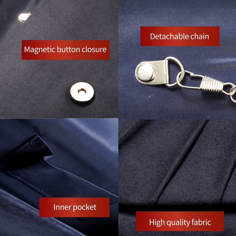 - Embrague o bolso de mano: cada bolsa de noche para boda viene con cadena de hombro desmontable en 49 cm. Se puede utilizar como bolso colgado en los hombros con la cadena desmontable o simplemente un bolso a mano. Un regalo ideal para novia, esposa, hija, amante y tu mejor amiga.