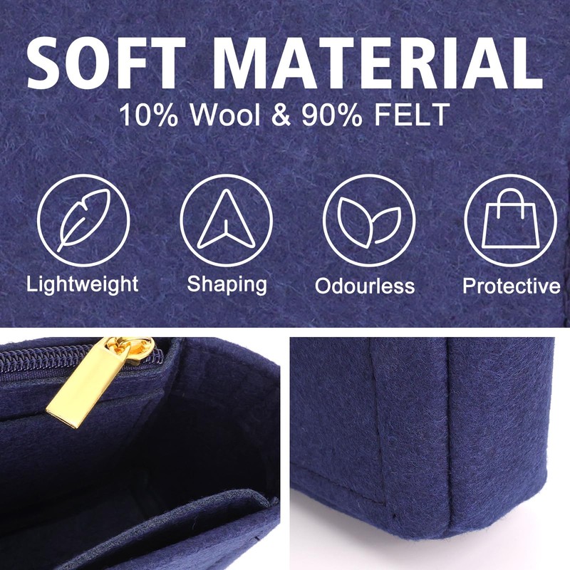 • High Quality Material: The felt purse organizer is made of high quality and brand new felt fabric, the adjustable shoulder straps for bags are made of high quality leather, soft and comfortable, wear-resistant, and durable. Thick felt fabric better protects the contents of your handbag. The hardware accessories are hand polished and four-layer electroplated, ensuring exquisite durability and not scratching your expensive and beloved bag.