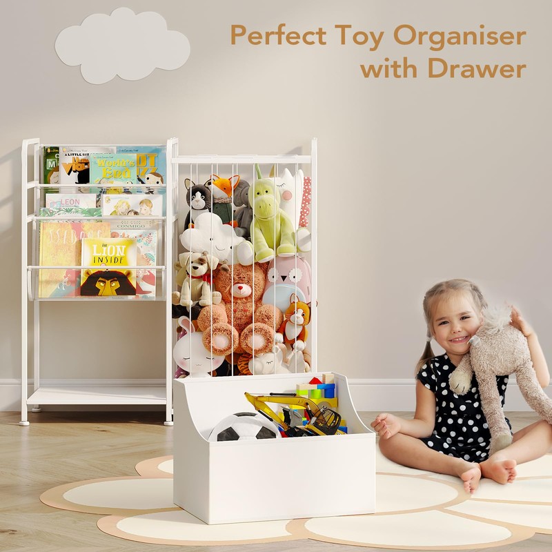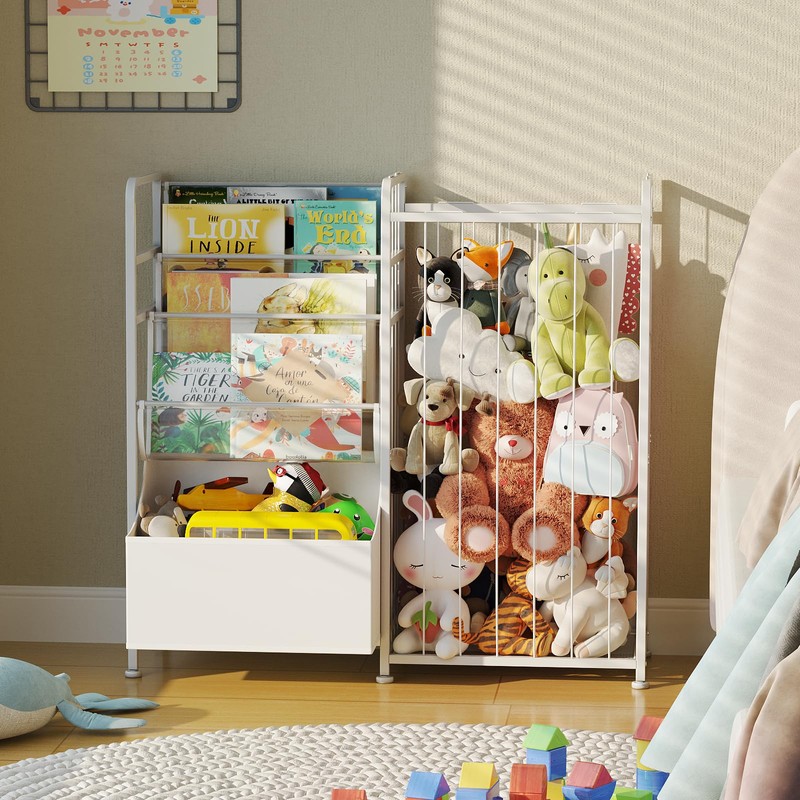 BBLIKE Kids Bookshelf and Stuffed Animal Storage - Multi-Function Nursery Book Shelves with Leather Toy Box and PVC Book Display, Toy Organizer for Playroom, Bedroom, Nursery, White