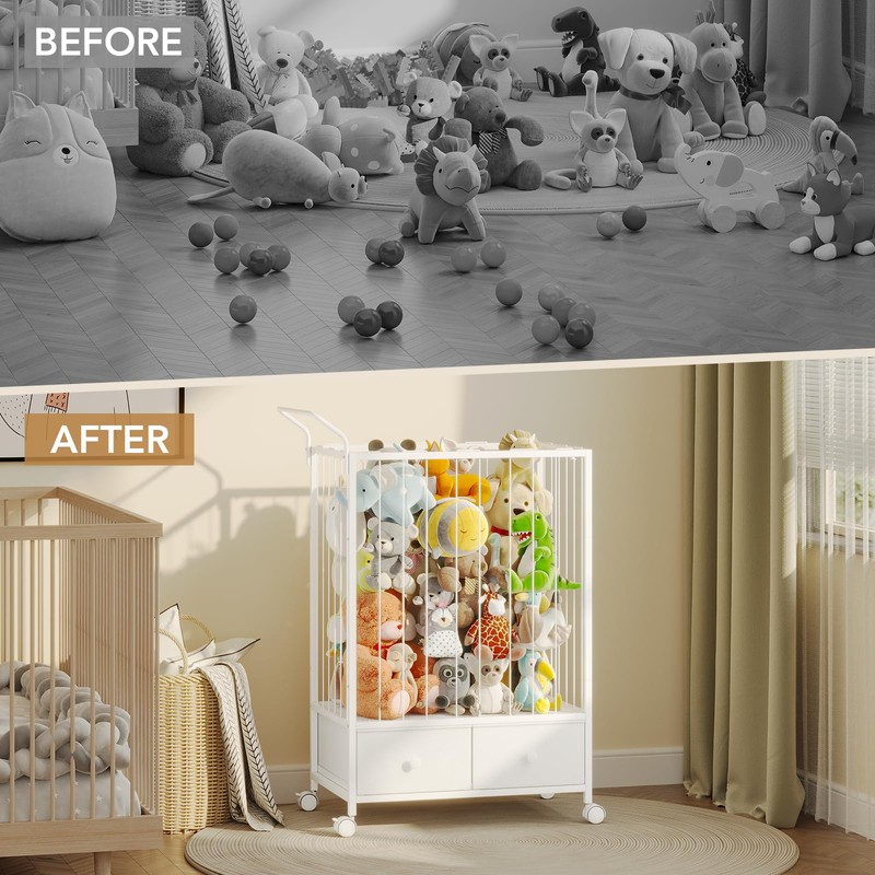 - [Creative Toy Display]Turn your child's plush collection into a charming "stuffed animal zoo" that's both functional and fun! Perfect for kids room organization and playroom storage