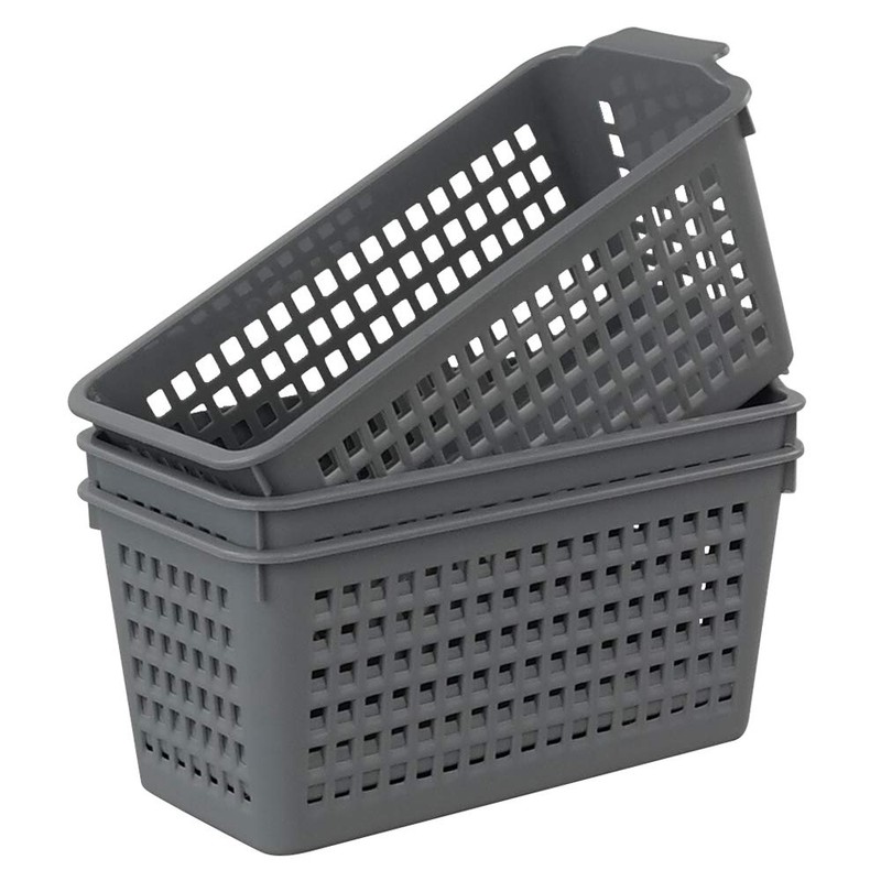 Bblina 3-Pack Small Grey Plastic Baskets for Kitchen Cupboard Storage