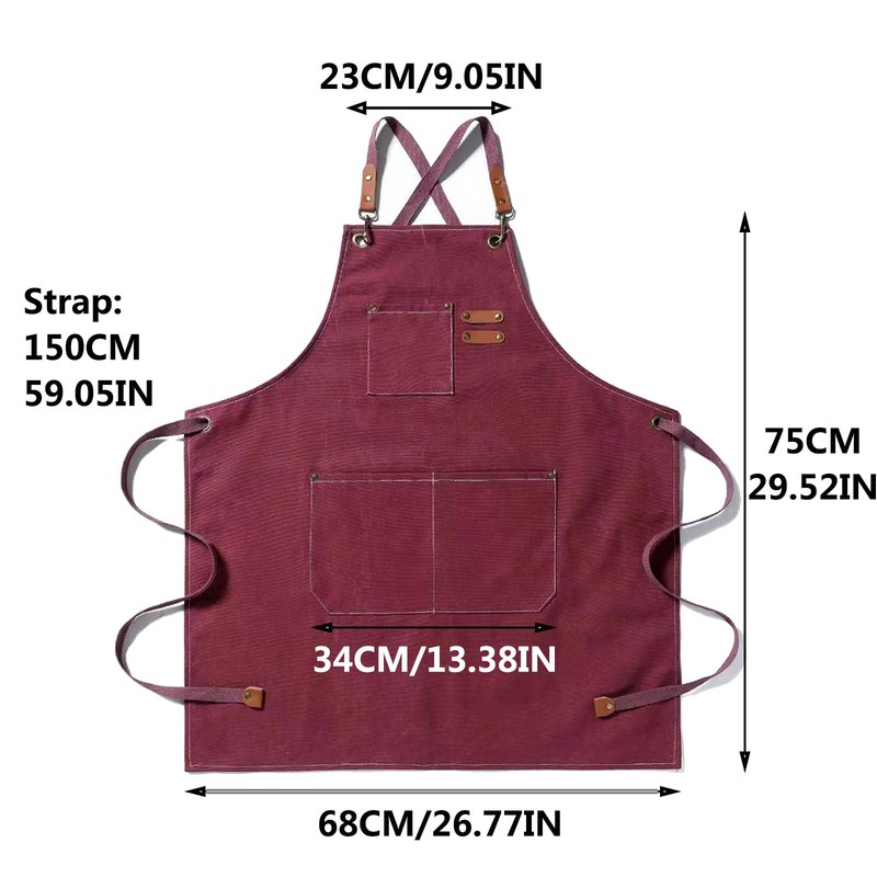 Our cross straps make your work more comfortable. Work apron with pockets, waterproof - thick - breathable - durable. The apron covers from the chest to the legs to protect against stains and water splashes. Product Name: Canvas Apron Product size: 74cm x 68cm Weight: 0.35kg Material: canvas. Suitable for: coffee, milk tea shop, home cooking, kitchen. Product List:1 x Canvas Apron .