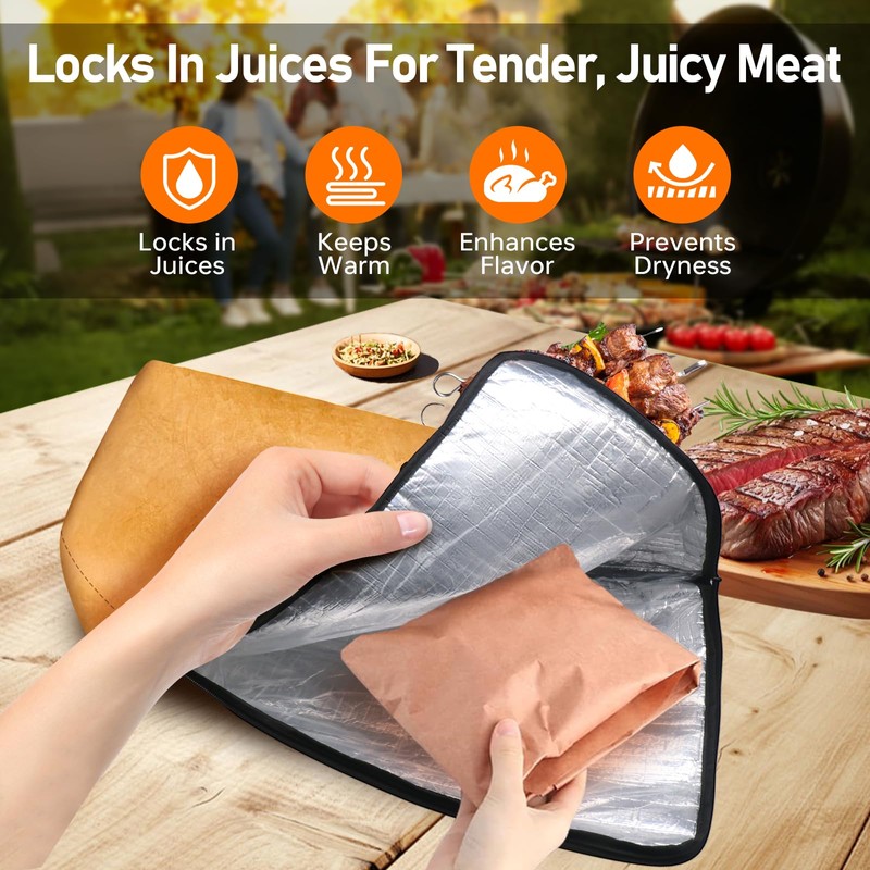 - ⏱️[PRO-GRADE INSULATED BBQ BAG] – Engineered with 4-layer premium insulation (Durable DuPont Paper + Heat Retention Pearl Cotton + Leak-proof PE Liner + Thickened Aluminum Foil) to lock in heat. Achieve restaurant-quality results with this bbq blanket for resting meat, ensuring juicier, more flavorful cuts every time.