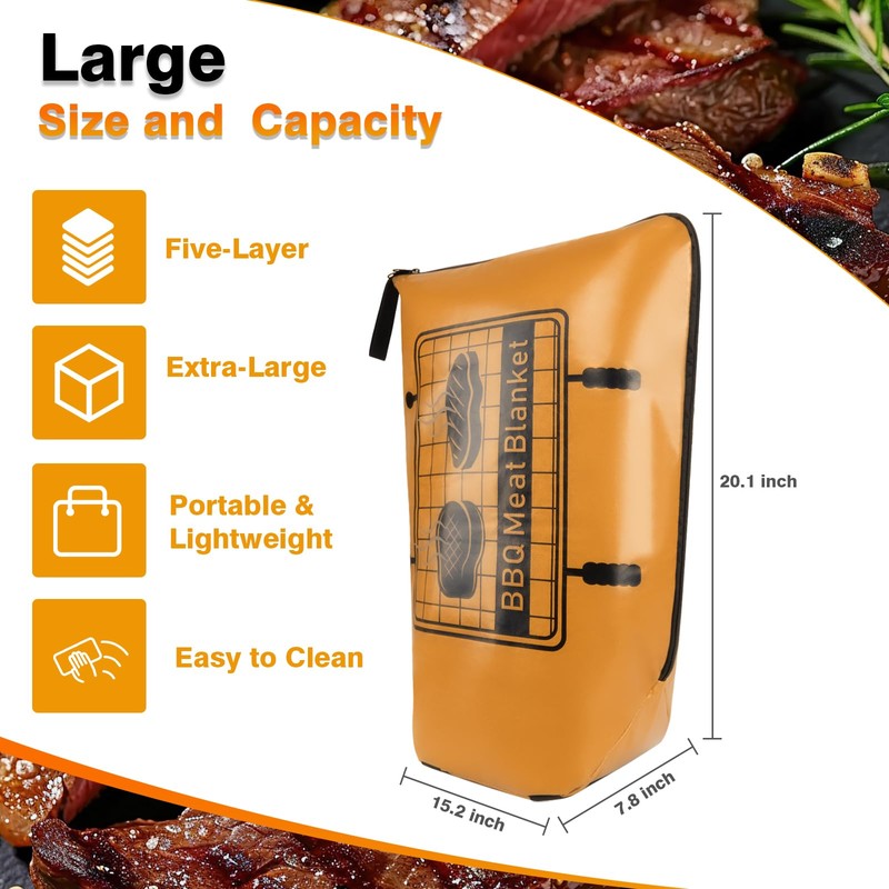 • 【Extra Large Capacity】Our BBQ meat resting bag has a spacious capacity, capable of holding large cuts of meat such as brisket, pork shoulder, and turkey. Featuring a wide-mouth design, this BBQ blanket allows for easy placement of oversized meat, making it more convenient to take in and out barbecue ingredients. It is ideal for carrying multiple servings of food during picnics, camping trips, beach parties and family party, making it an ideal choice for large-scale events