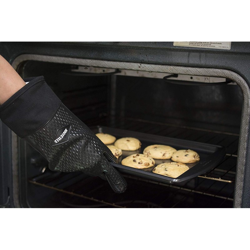 BBQ Butler Heat Resistant Oven Gloves - Silicone Oven Mitts - Heat Resistant Gloves - Baking Gloves - Grilling Gloves - Hot Mitts - Cotton-Lined for Comfort