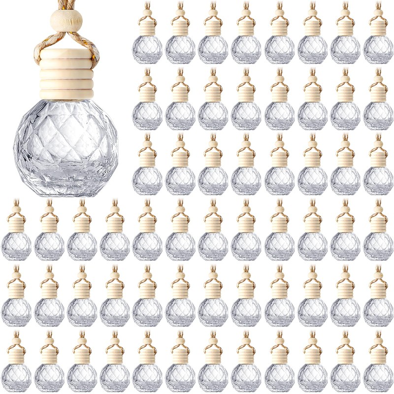 BBTO 100 Pcs Car Air Fresheners Diffuser with Wooden Cap Empty Aromatherapy Diffuser Clear Car Fragrance Holder Pendant Hanging Perfume Fresheners Bottles for Car Decor (Clear Round Diamond)