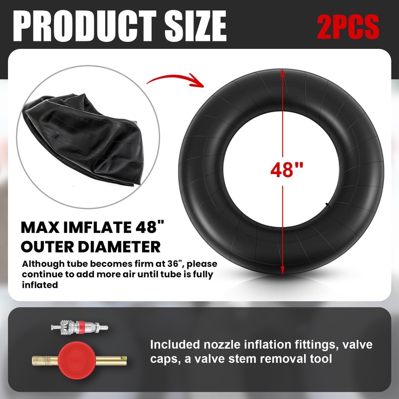 - Well Sized Winter Thrill: each rubber snow tube is about 48 inches when inflated, the suitable size ensures good control while sliding downhill, providing both safety and fun, making your snowy experiences unforgettable, the tube becomes hard at about 44 inches in diameter, please continue to inflate until fully inflated