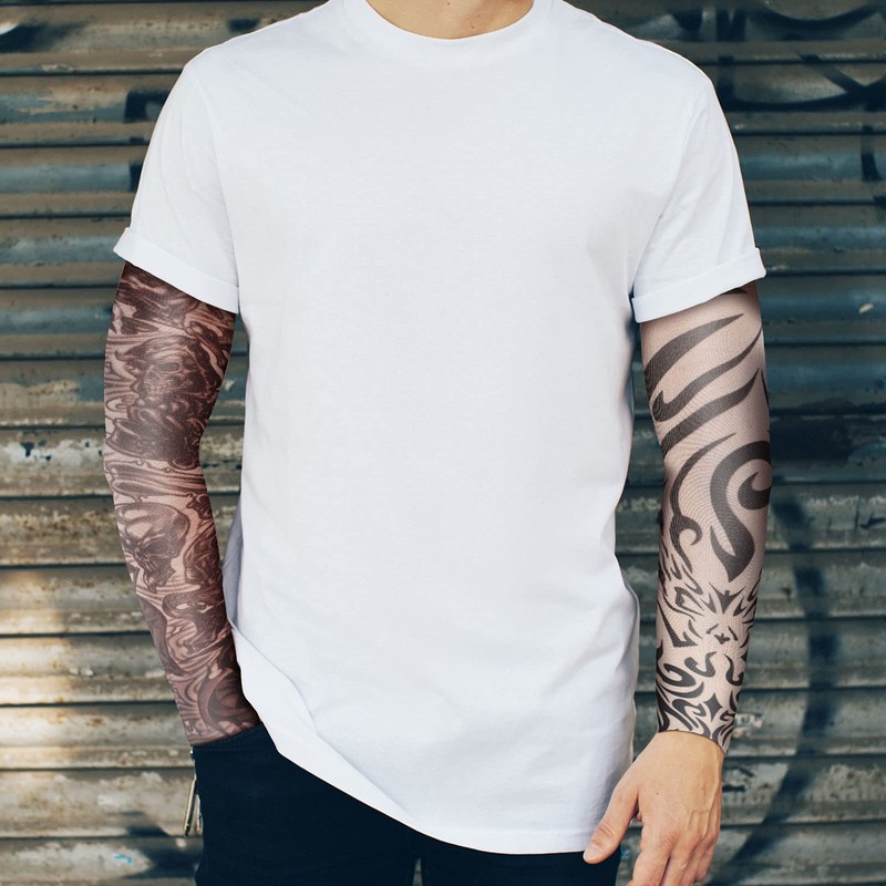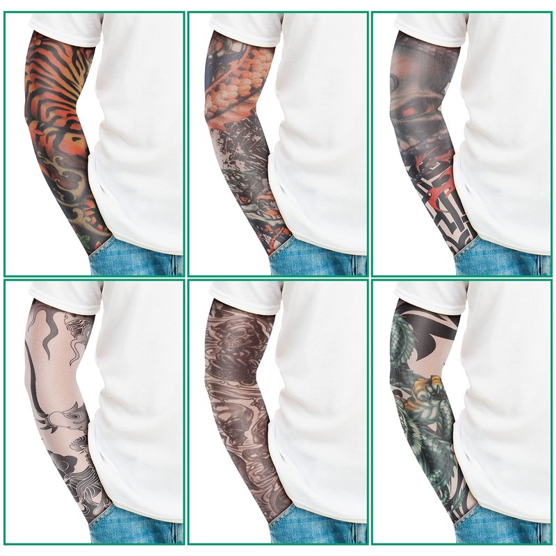 BBTO Tattoo Sleeve Set Fake Sun Cream Arm Warmers Pack of 12, Lines pattern