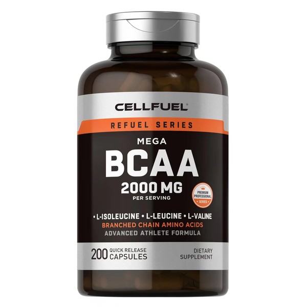 高純度 BCAA 2000 (1ボトルにBCAA100000㎎) 200粒入 カプセル 無味無臭 甘味料香料不使用 CoA分析証明書あり CELLFUEL from N.Y.