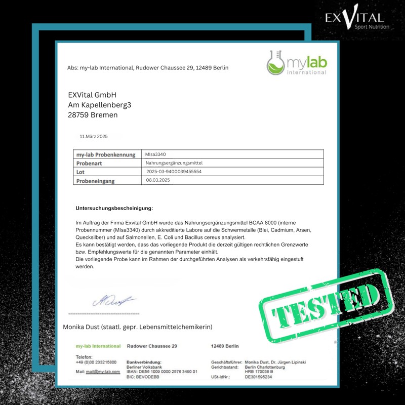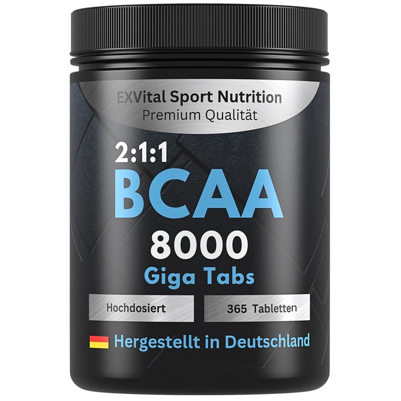- EXVITAL Sport Nutrition BCAA: Essential amino acids in the best ratio 2:1:1 (leucine, valine, isoleucine). High dose with 8000 mg BCAA per daily dose. 365 vegan tablets are enough for 45 days!