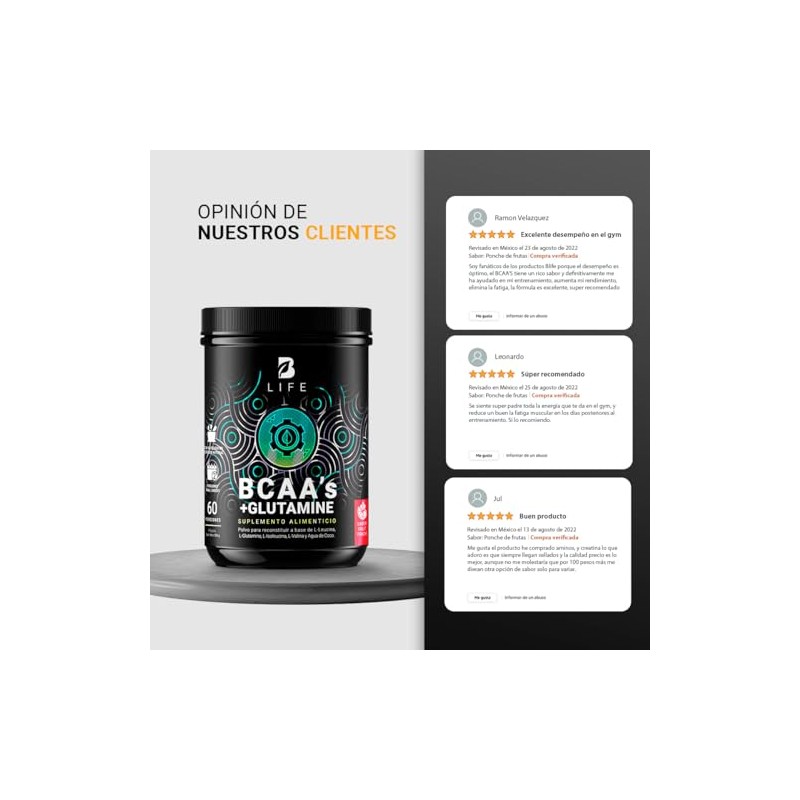 B Life Company - BCAAs con Glutamina en polvo con 60 Porciones. Leucina, Isoleucina, Valina, Glutamina y Agua de Coco. BCAAs + Glutamine Sabor FRUIT PUNCH 558 Gramos B Life.. 💯 Autenticidad y máxima durabilidad comprobadas. Materiales de alta gama y acabados premium. 💎 Calidad superior certificada. Ideal para quienes buscan lo mejor en calidad y estilo. Producto auténtico con satisfacción total asegurada. ¡No te quedes sin el tuyo y aprovecha esta oportunidad única!