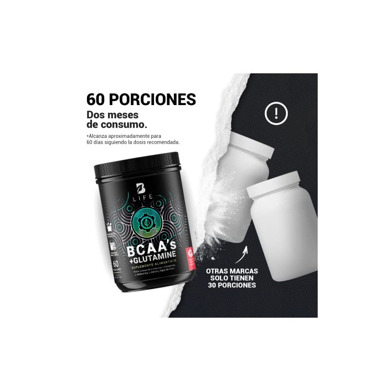 🌟 ⭐ BCAAs con Glutamina en polvo con 60 Porciones. Leucina, Isoleucina, Valina, Glutamina y Agua de Coco. BCAAs + Glutamine Sabor FRUIT PUNCH 558 Gramos B Life. ⭐ 🌟