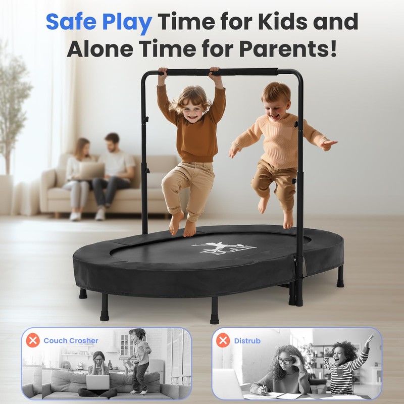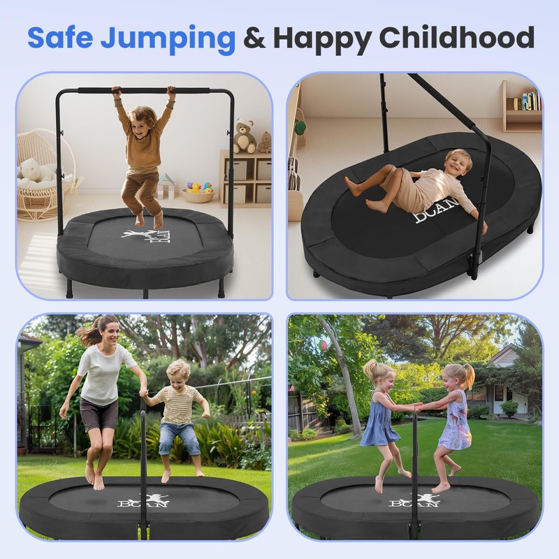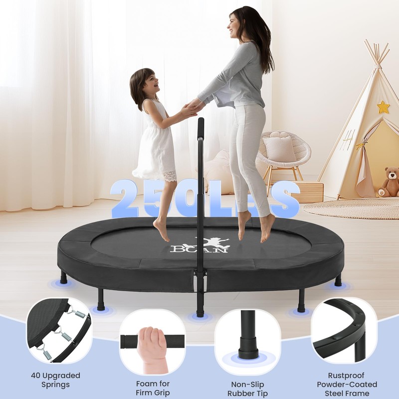 BCAN Kids Trampoline Indoor Double Kids Trampoline with Adjustable Handle Trampoline Foldable Max Load 251 LBS