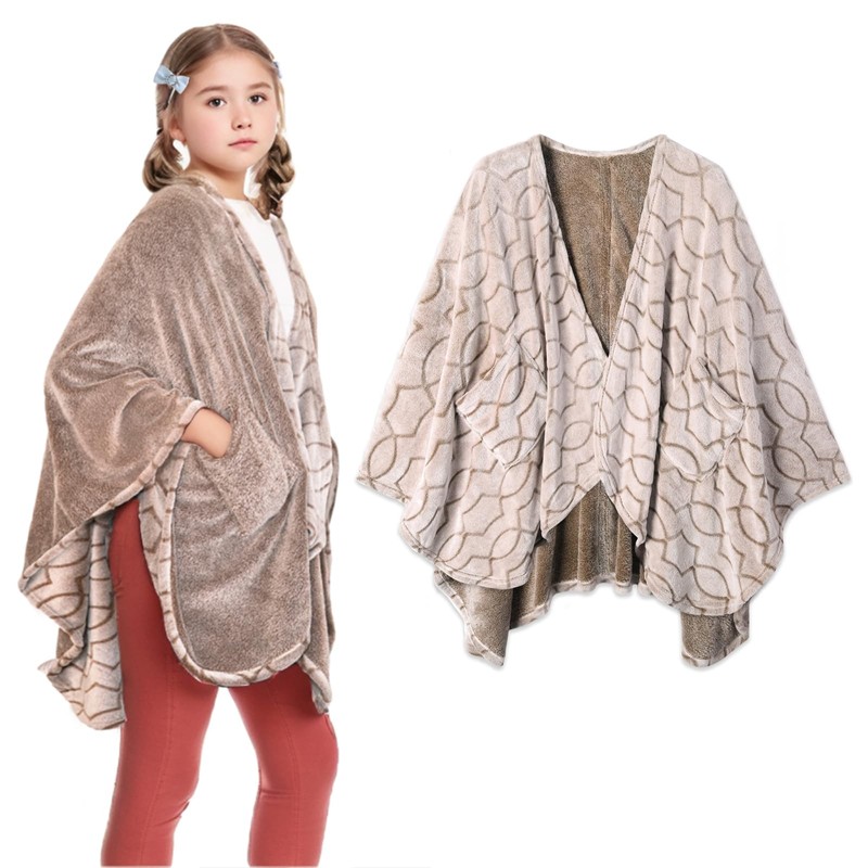- đăWearable BlanketăïŒThis wearable blanket is not only functional but also stylish. The cape-like design wraps around your body elegantly without excess fabric getting in the way. The addition of two handy pockets on the front of each side allows you to keep your hands warm and store small essentials like your phone or remote control.