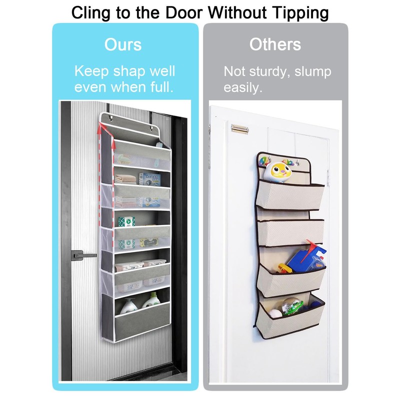 - ODORLESS AND SAFE - Bchway over door storage organizer allows you to quickly see inside and easily reach what you need. No worry about flakey fibers and bad smell, or any other safety hazards since it's well stitched with the see-through mesh and thicker heavy duty odorless non-woven fabric instead of vinyl, much safer to babies.