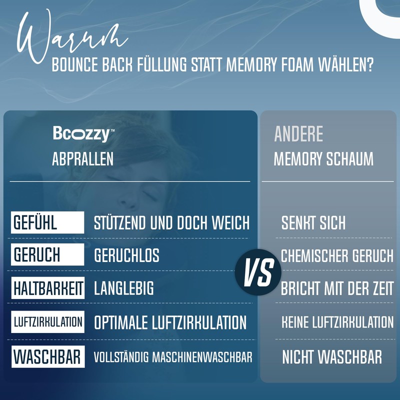 - 3 ergonomic positions with double support: you can adjust the ergonomic BCOZZY pillow to your desired sleeping position and get maximum comfort. Front: place the overlapping cushion arms under the chin for double chin support. Side: when you sleep sideways, fold the pillow in the middle, place it on your shoulder and lean your head to the side. Front and side: if your head falls forward and to the side, slide the overlapping arms 90 degrees to the side and get double support for the neck and chin.