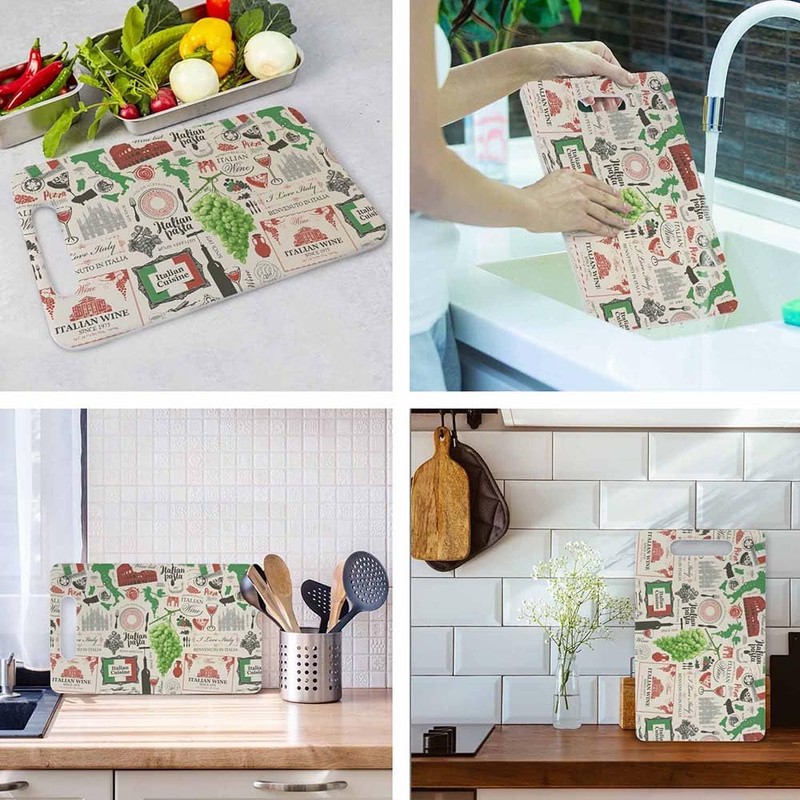 - Material: Retro Italian Pattern cutting board is made of high quality polypropylene. Non-slip surfaces help prevent slippage during food preparation and ensure safety during cutting. Tit will not bend or crack.