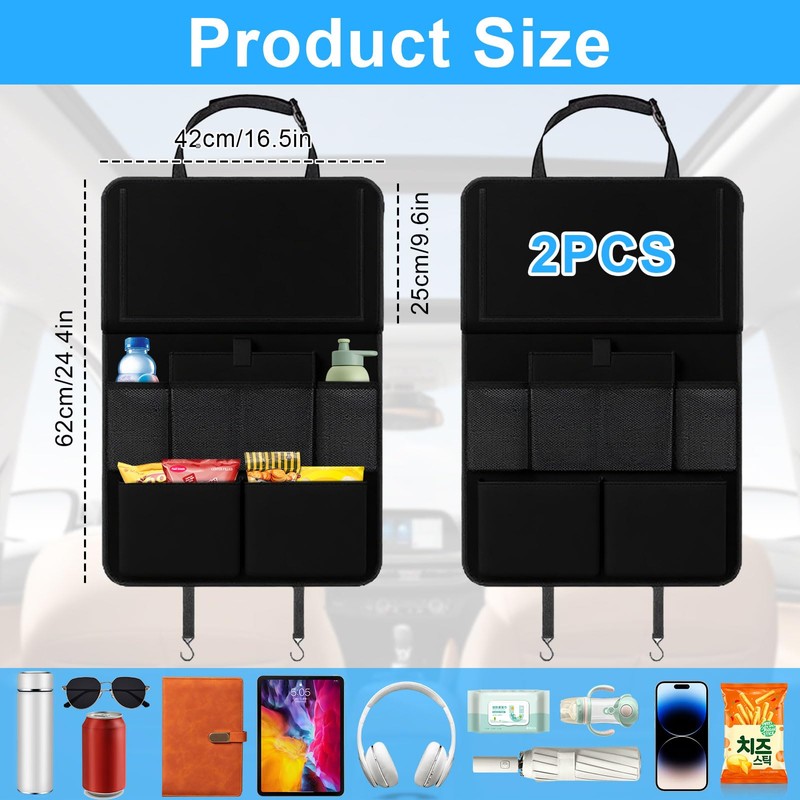 - Universal fit: the upgrade car back seat has a foldable tray. This is designed to make it easier for you to use the folding table for dining and leisure activities. Our car organiser can store books, pens, children's toys, cups, tablets and much more and offers you a tidy and spacious car environment.