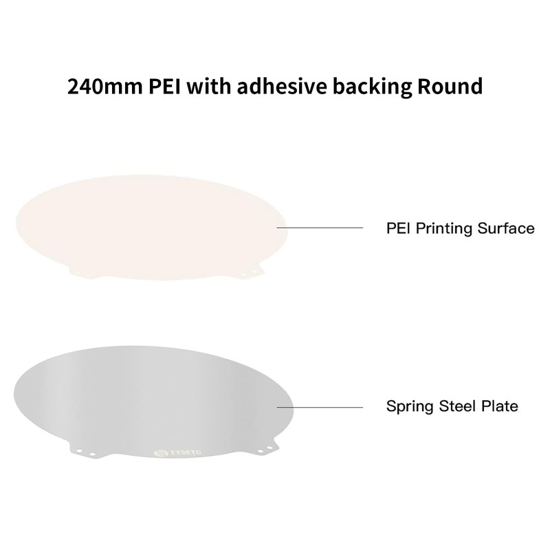 1 x 240 mm round spring steel sheet + PEI glued.