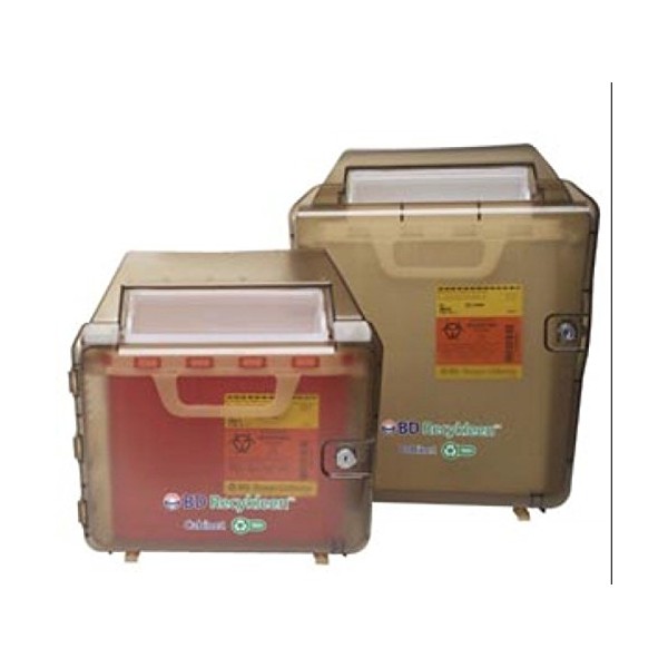 BD Medical Systems 305097 Recykleen Sharps Wall Cabinet, 15" x 7" x 19" Size, 2/3 gal Capacity, Brown