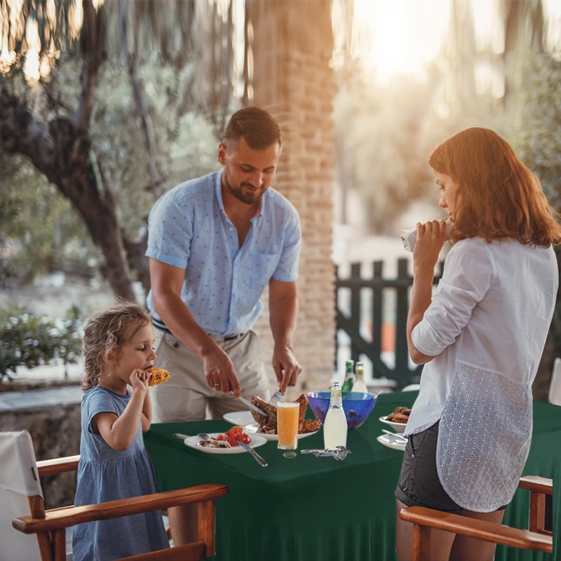 BDDC Table Skirts for Rectangle Tables 6ft - One-Piece Hunter Green Table Covers for 6 Foot Tables, Wrinkle Resistant Ruffles Elastic Table Cover and Table Skirt for Banquets, Parties