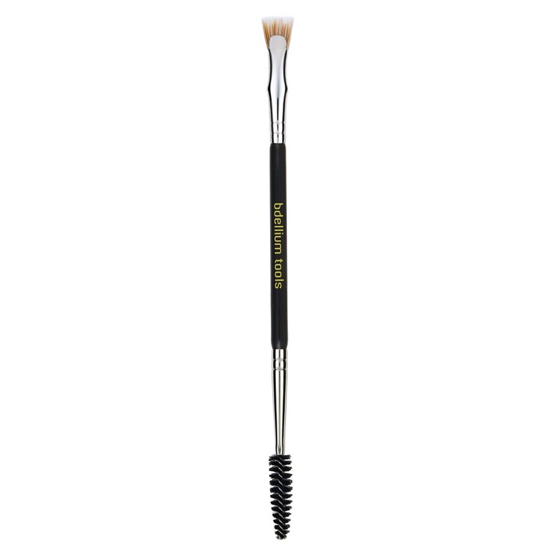 Bdellium Tools Professional Makeup Brush - Maestro Series 728 Double-ended Bent Lash Fan and Spoolie - With All-Vegan Synthetic Fibers, For Achieving Clean, Clump-free Mascara Application (Black, 1pc)