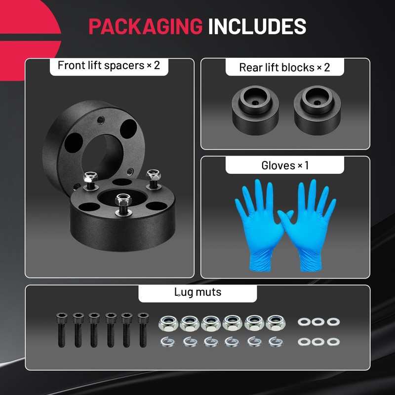- 【Product Use】Generally, the car is not completely flat when driving on the road. Front lift kits are to raise the factory rake of your vehicle, make the front and rear of the car level. Increase the distance between the frame and the ground, make the vehicle look more perfect and cool. But it will never lessen your comfort level, making you more relaxed and enjoyable driving.