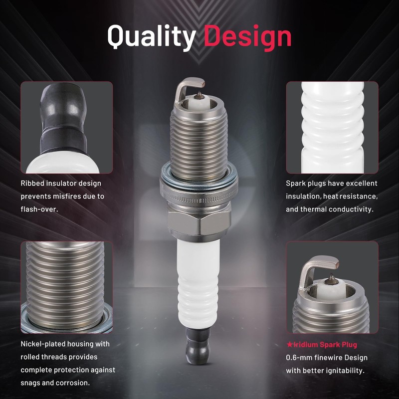 - 【Spark Plug Features】:BDFHYK Spark plugs with superior ignition performance, faster and more sensitive ignition jumps, significant increase in power performance, saving energy consumption in the ignition process, efficiently adapted to the needs of the car. Exquisite production process, 100% brand new high quality auto parts, OE level durability.OE standard performance and durability TS16949 certified manufacturer.