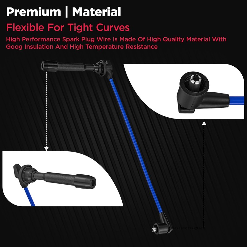 - 【Spark plug wire set features】 BDFHYK spark plug wire uses high-quality sheath insulator, braid, conductor and inner core. The silicone rubber wire body has high temperature resistance and strong insulation, which can better prevent spark plug wire leakage, help maximize spark generation and provide protection, make the connection more stable and have a longer service life.