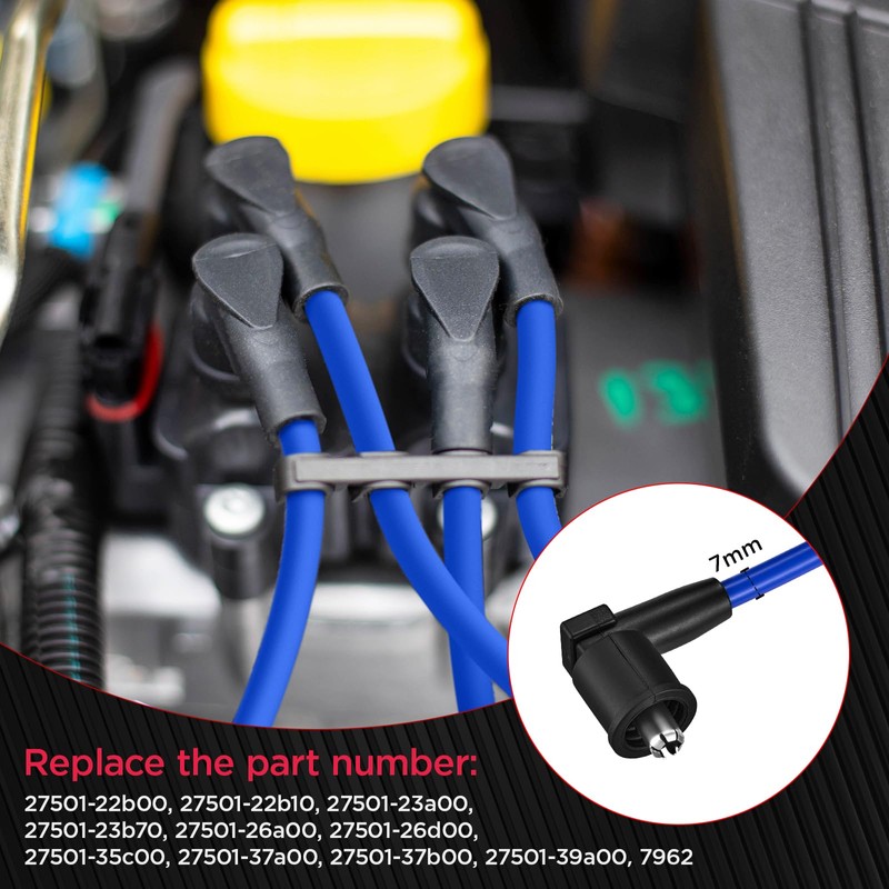- 【Replacement Parts Original Number】 7mm Professional Spark Plug Wire for 7962, 27501-22b00, 27501-22b10, 27501-23a00, 27501-23b70, 27501-26a00, 27501-26d00, 27501-35c00, 27501-37a00, 2750 1-37b00 , 27501-39a00, More supported models and brands can be found on the details page.
