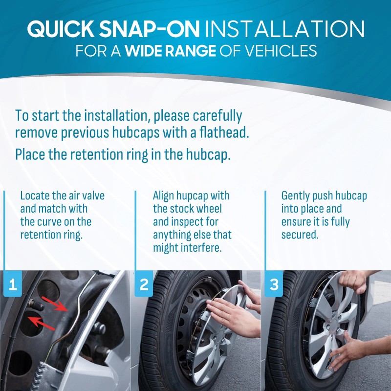 - QUICK & EASY INSTALLATION – NO TOOLS NEEDED: No tools or professional help required—these 16-inch wheel covers snap on in minutes! Simply align, push into place, and you’re ready to hit the road. Great for DIY car enthusiasts or anyone wanting an instant visual upgrade. Instructions are included to guide you through the fast, tool-free installation process, saving time and money on expensive garage visits.